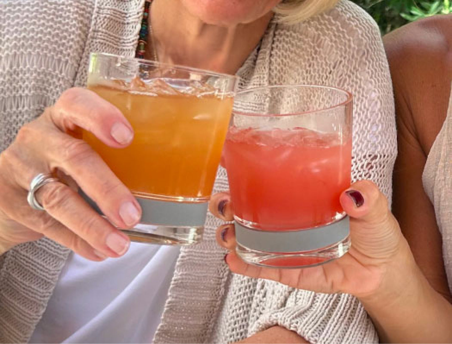 Each glass is elegantly hand-crafted with a ring of natural stone integrated into its base. The stone acts as a built-in coaster trapping condensation to keep your tables dry.