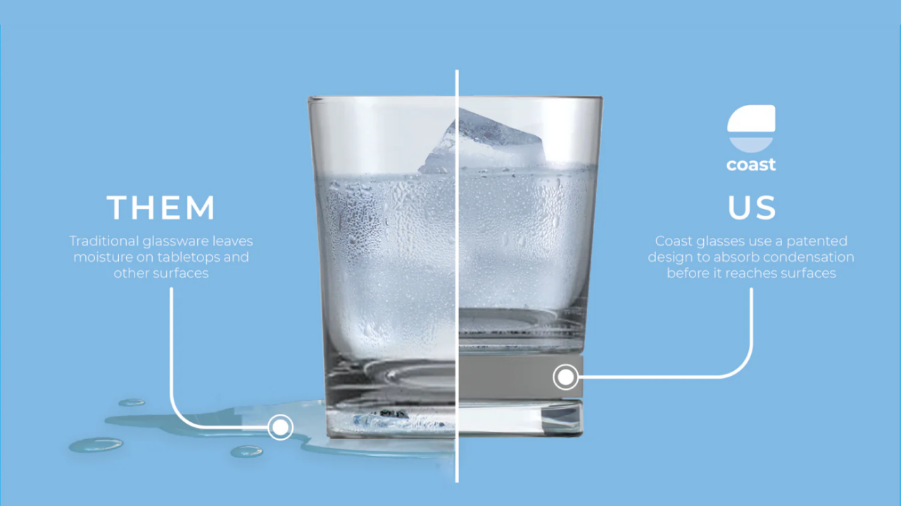Coast Glasses feature porous natural stone that absorb condensation and protect surfaces.