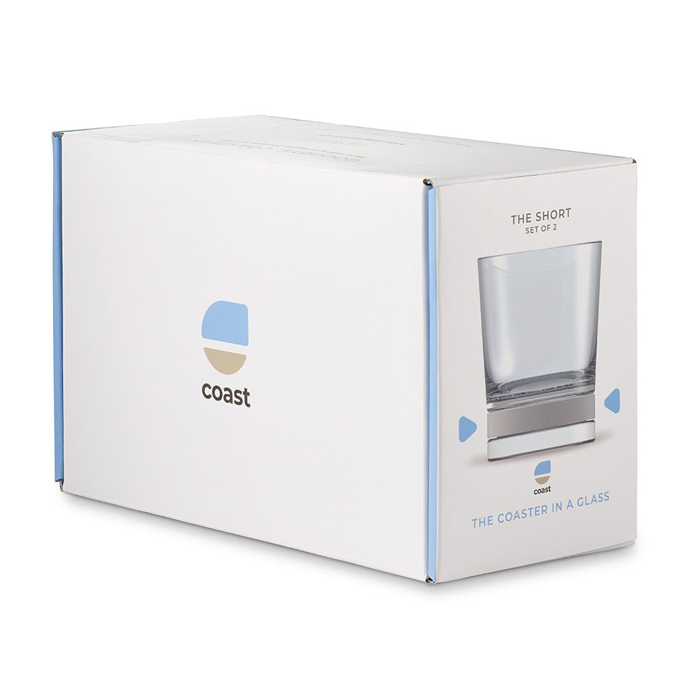 Each box of Coast contains two double old-fashioned style drinking glasses.